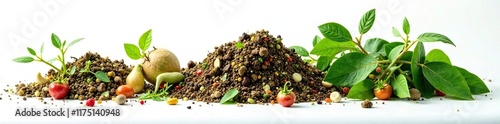 © Sutasinee, Fototapeta premium Decomposing organic waste on a white background, decay, organic, green