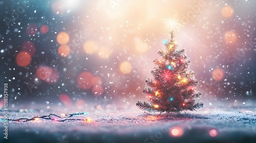 Naklejka premium Decorated Christmas Tree in Snowy Winter Landscape