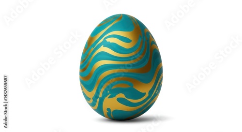 © Adiba sakila atmarin, Obraz premium Decorated Easter Egg with Teal and Gold Waves