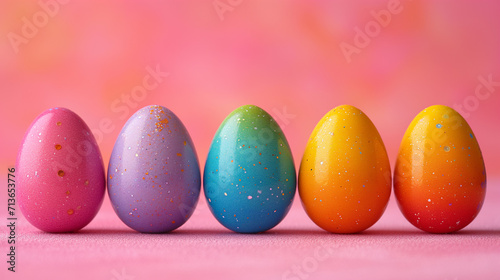 Obraz premium decorated Easter eggs in a row against a solid background