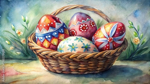 © Danyil, Fototapeta premium Decorated Easter Eggs in Basket