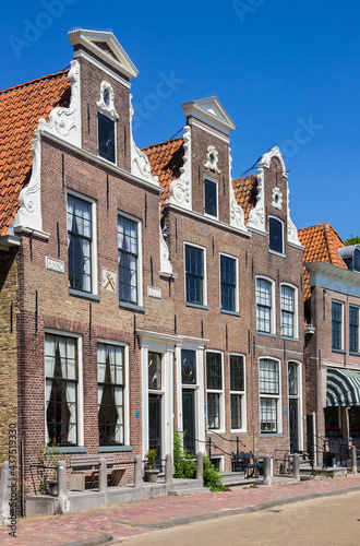 Fototapeta premium Decorated facades of historic houses at the inner harbor of Blokzijl, Netherlands