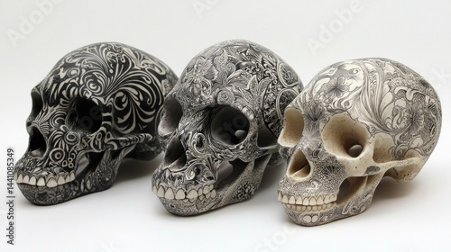 © SlashStd, Naklejka premium Decorated skulls art studio display