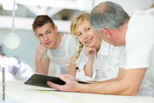 Fototapeta premium decorating team looking at clipboard