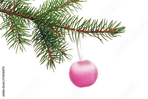 © Vitaliy, Obraz premium Decoration on Christmas tree branch isolated on white background