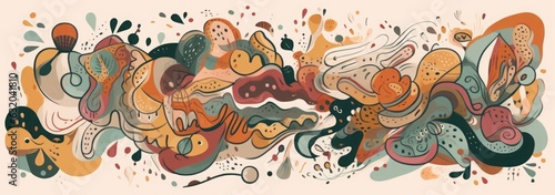 © nupam, Obraz premium Decorative abstract horizontal banner with colorful doodles. Hand-drawn modern illustration, Generative AI