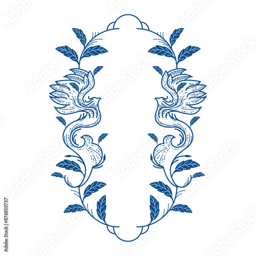 © ferdi, Fototapeta premium DECORATIVE ART FLORAL 77 BLUE PHOENIX NATURE FRAME DECORATION