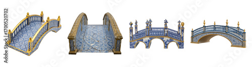 Obraz premium Decorative Azulejo bridge set including traditional, ornate, arched, and aged designs isolated. Cultural architecture elements.