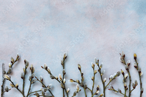 Obraz premium Decorative background with willow branches, copy space. Easter, Palm Sunday