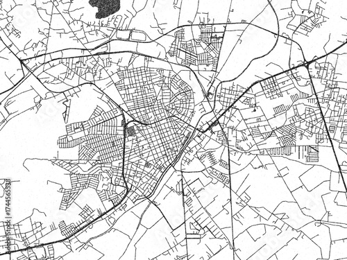 Naklejka premium Decorative black and white map of Lagos de Moreno, Mexico, rendered in...