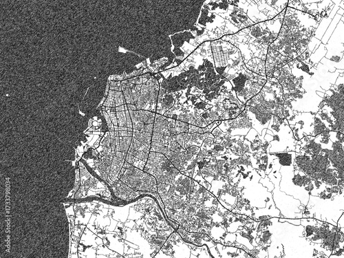 © W&S Stock, Fototapeta premium Decorative black and white map of Makassar, Indonesia, rendered in sketch-like style.