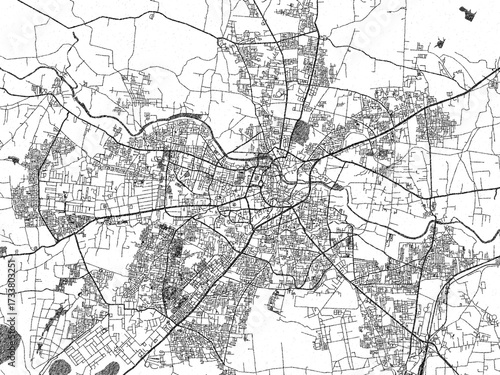 © W&S Stock, Fototapeta premium Decorative black and white map of Nashik, India, rendered in sketch-like style.