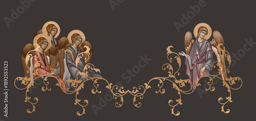 © Julia, Naklejka premium Decorative border featuring angels. Byzantine sacred art