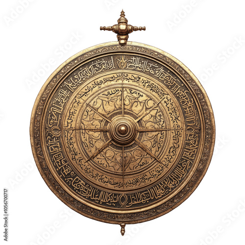 Naklejka premium Decorative Bronze Shield with Intricate Design