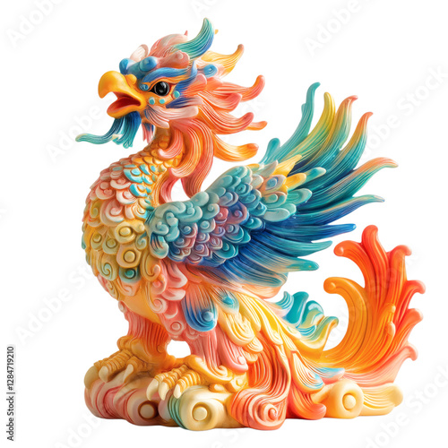 Fototapeta premium Decorative Chinese Phoenix Figurine Isolated on Transparent Background