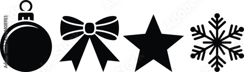 Obraz premium Decorative christmas elements set: bauble, bow, star, snowflake Vector