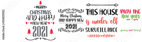 Fototapeta premium Decorative Christmas New Year Calligraphy, Inscriptions Collection Vector Illustration for Gift Card, Announcement, Printing Press