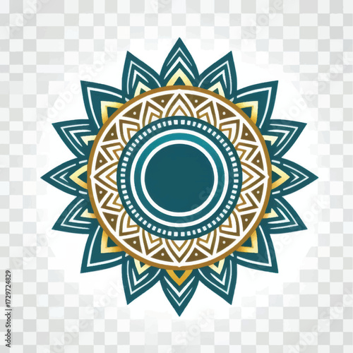 © devilito, Naklejka premium Decorative circular design with teal and gold colors floral pattern.