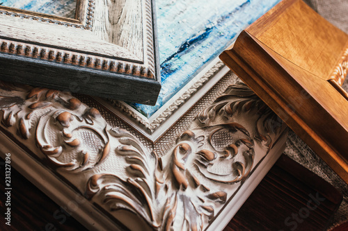 Fototapeta premium Decorative classic picture frames. Wooden frames background.