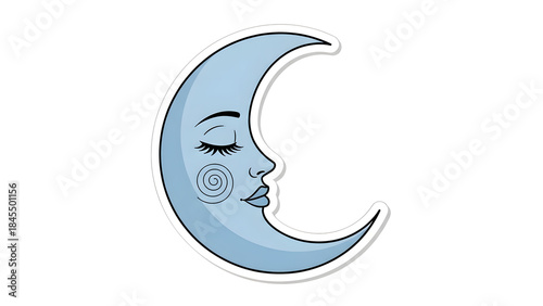 Obraz premium Decorative Crescent Moon With Face Illustration