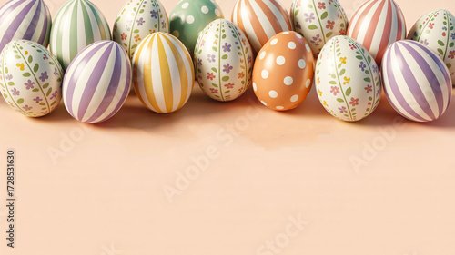 © Adnan Gee, Obraz premium Decorative easter eggs with patterns on a peach surface