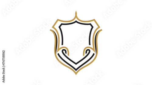 © Khoirul, Fototapeta premium Decorative emblem featuring shield shape with gold and black outlines on a white background