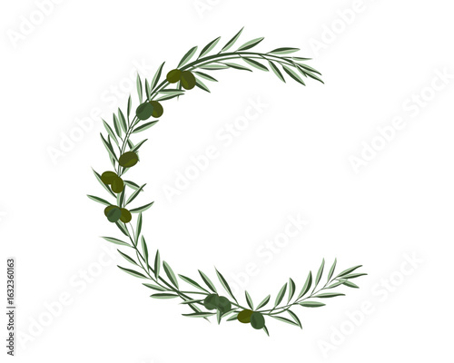 © Gohan T, Obraz premium Decorative floral frame with green olive isolated on white background