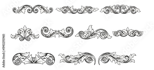 © Kayu, Fototapeta premium Decorative floral ornaments design elements vector illustrations on black background