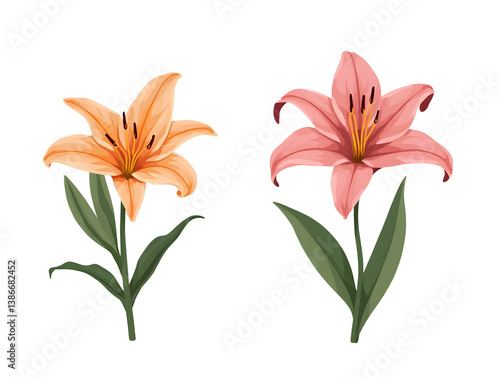 Naklejka premium Decorative flower clipart of orange and pink lilies nature illustrative...