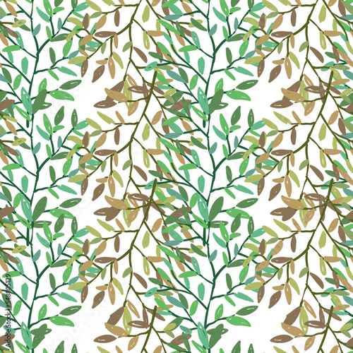 Fototapeta premium Decorative forest twig endless wallpaper. Hand drawn branches with leaves seamless pattern.