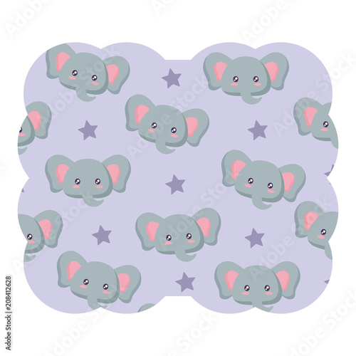Fototapeta premium decorative frame with cute elephants pattern over white background, vector illustration