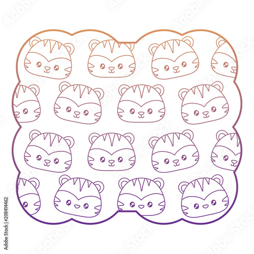 © djvstock, Obraz premium decorative frame with cute tigers pattern over white background, vector illustration