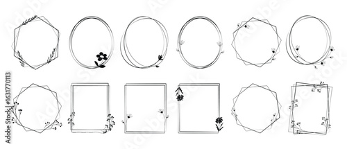 © Sheza, Fototapeta premium Decorative frames of various shapes with flowers in a minimalist style. Vector illustration of line art