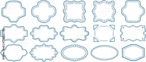 © MDMAHBUBUR, Obraz premium Decorative Frames Set, Blue Ornate Border Collection on White Background, Grunge Style