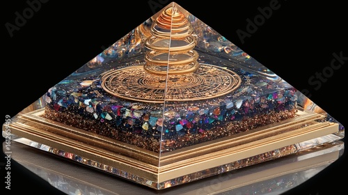 © Michael, Obraz premium Decorative Glass Pyramid with Gold Accents and Colorful Glitter Inside