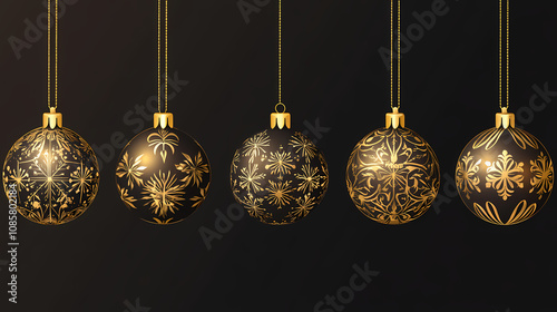 Fototapeta premium Decorative golden ornaments typically hung on christmas trees or used as centerpieces for holiday decor. Halcyon. Illustration