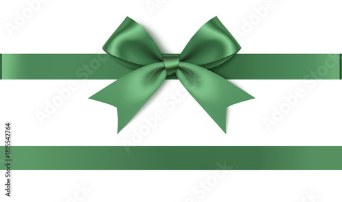 © Gizele, Obraz premium Decorative green bow with green ribbon isolated on white. Christmas, New Year or Patricks day decoration. Beautiful green gift bow. Vector stock illustration. Not AI