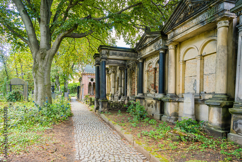 Naklejka premium Decorative historic family tombs in the old Jewish cemetery in Wrocław.