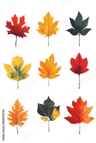 Fototapeta premium Decorative Leaves Design Autumn Vibes with Organic Patterns On Transparent...
