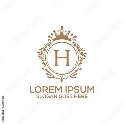 Fototapeta premium Decorative luxury H letter logo design template vector eps