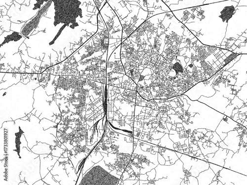 © W&S Stock, Naklejka premium Decorative monochrome illustration of Jhansi, India, showing its detailed grid.