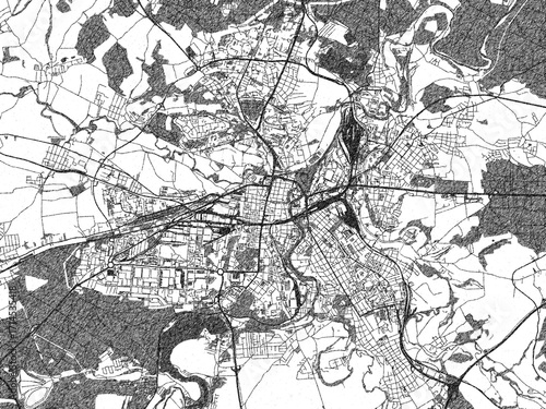 Naklejka premium Decorative monochrome illustration of Pilsen, Czechia, showing its detailed grid.