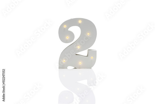 © photographyfirm, Naklejka premium Decorative Number 2 with Embedded LED Lights Over White Background