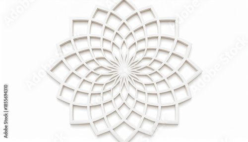 © STD, Obraz premium Decorative object featuring subtle Islamic geometric pattern, isolated on white background. Minimal Eid al-Fitr design representing spirituality, tradition, and cultural elegance.