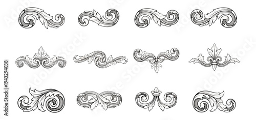 © Kayu, Fototapeta premium Decorative ornamental design elements collection on black background