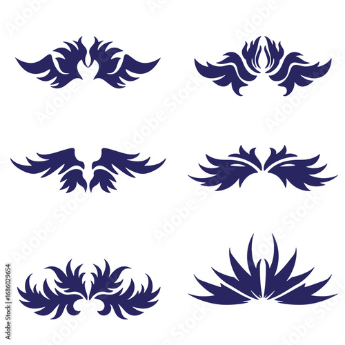Fototapeta premium Decorative ornamental elements set featuring six abstract wing and leaf shaped design vectors