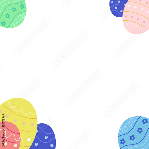 © vectorfusionart, Fototapeta premium Decorative pastel Easter eggs are framing transparent background in flat design, copy space