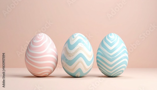 © Nayeon Ling Nuii 1, Obraz premium Decorative pastel eggs with zigzag patterns on a soft background.