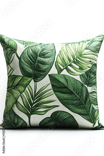 © Serhii, Obraz premium Decorative pillow with green leaf design on isolated white background perfect for home decoration