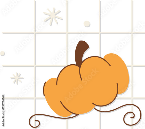 © vectorfusionart, Naklejka premium Decorative pumpkin is floating on transparent backdrop in flat style with grid, vine, bursts, dots